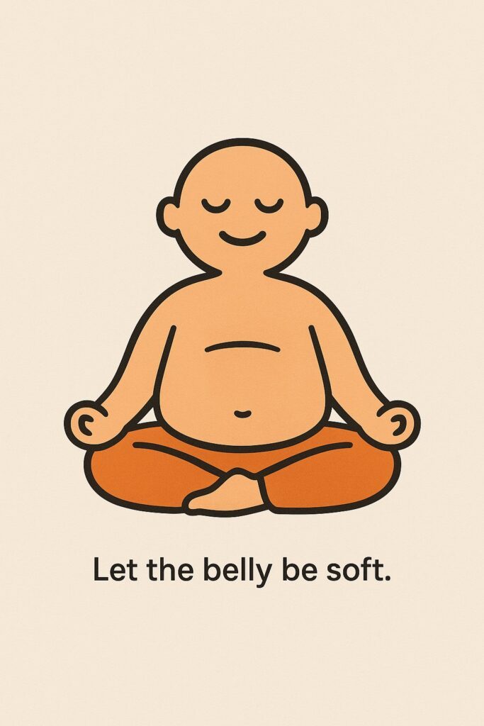 Er sprach über das Konzept des „weichen Bauchs“ – ja, genau: der weiche Bauch. Eine einfache, sofort wirksame Meditationstechnik. Es geht nicht um tiefe Konzentration oder spirituelle Versenkung, sondern darum, das loszulassen, was sich anspannt, wenn das Leben nicht nach Plan läuft.